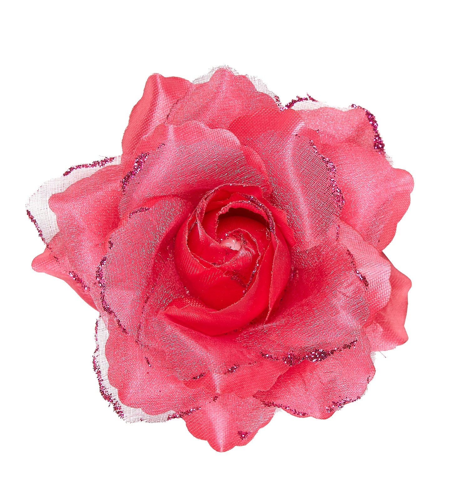 Pink rose hair clip with glitter