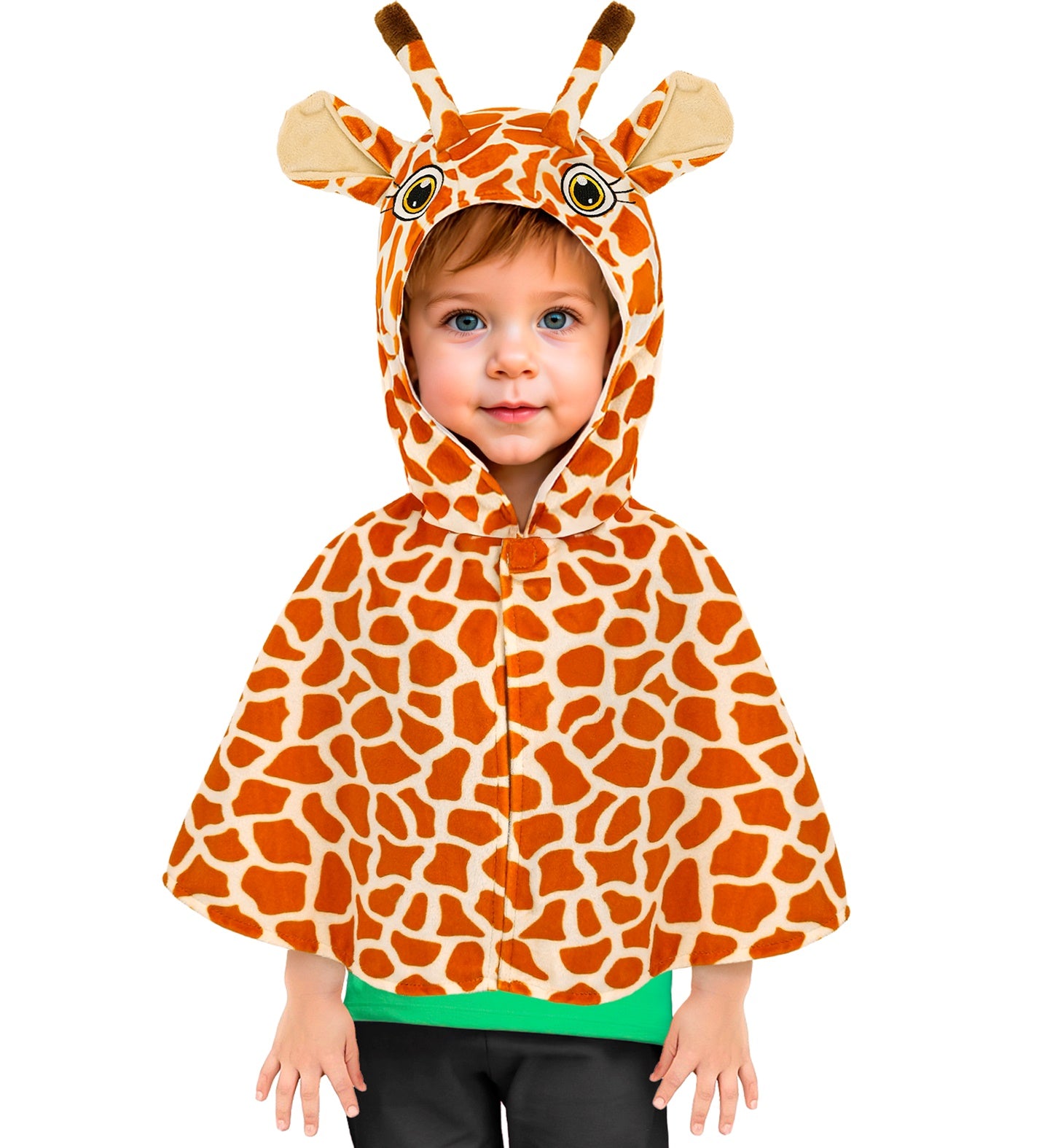 Plush poncho with giraffe hat