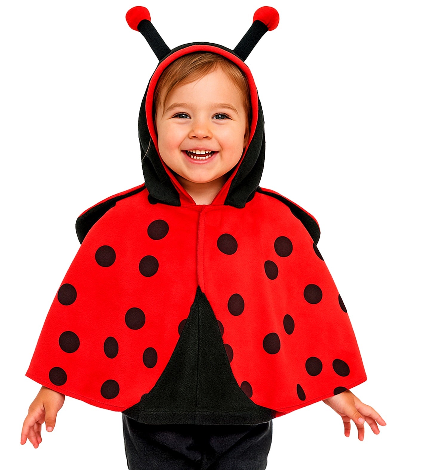 Plush poncho with ladybug hat