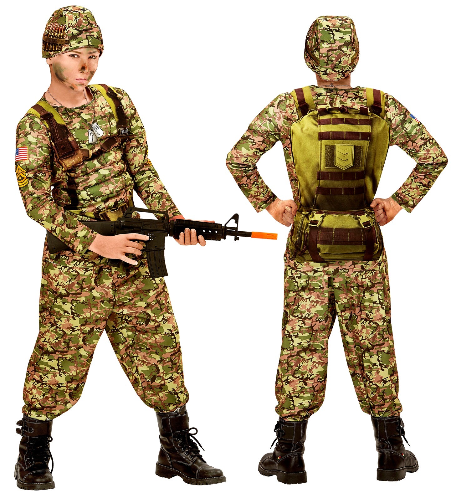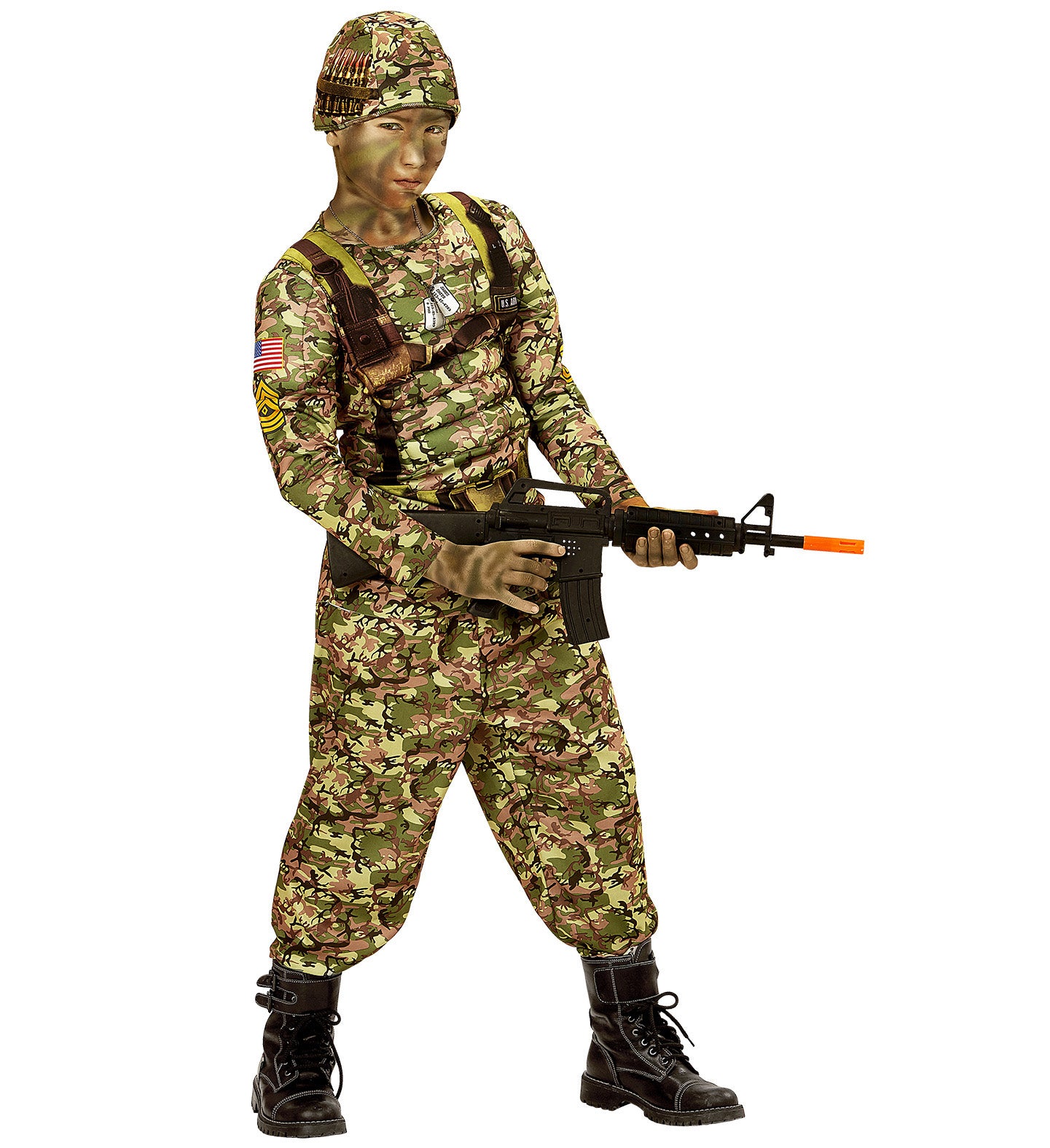 Rough Power soldier Menno includes: camouflage overall with muscular upper body soldiers helmet Read more
