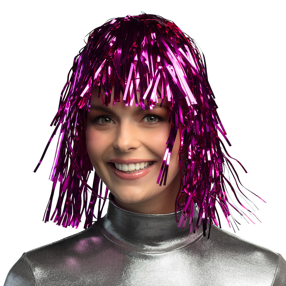 Tinsel wig Metallic fuchsia