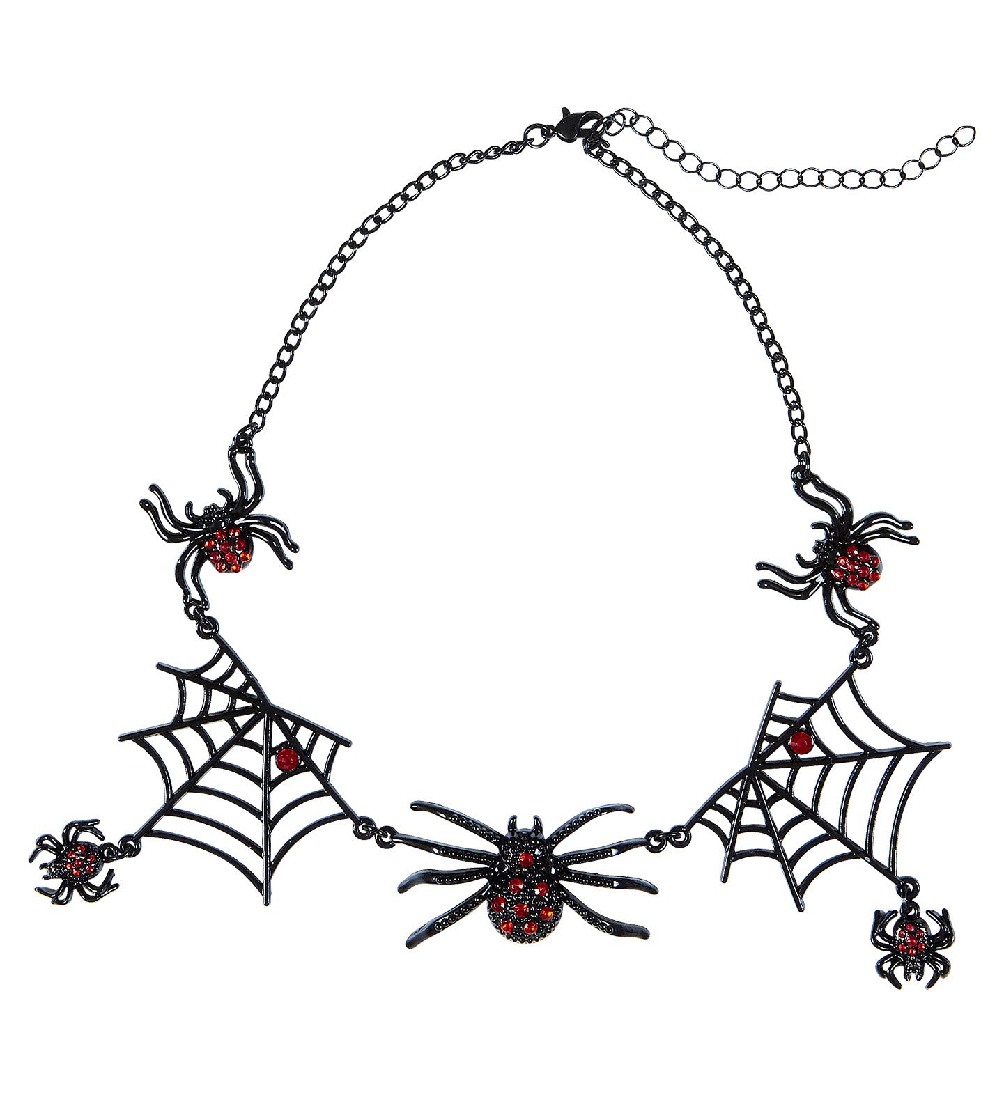 Rhinestone necklace witch with spiders