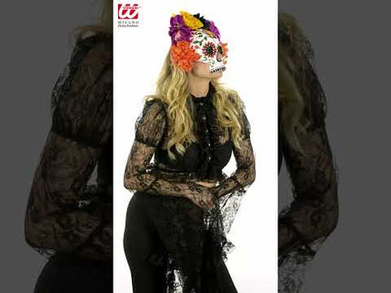 Skull mask Day of the Dead with colored flowers Anouk