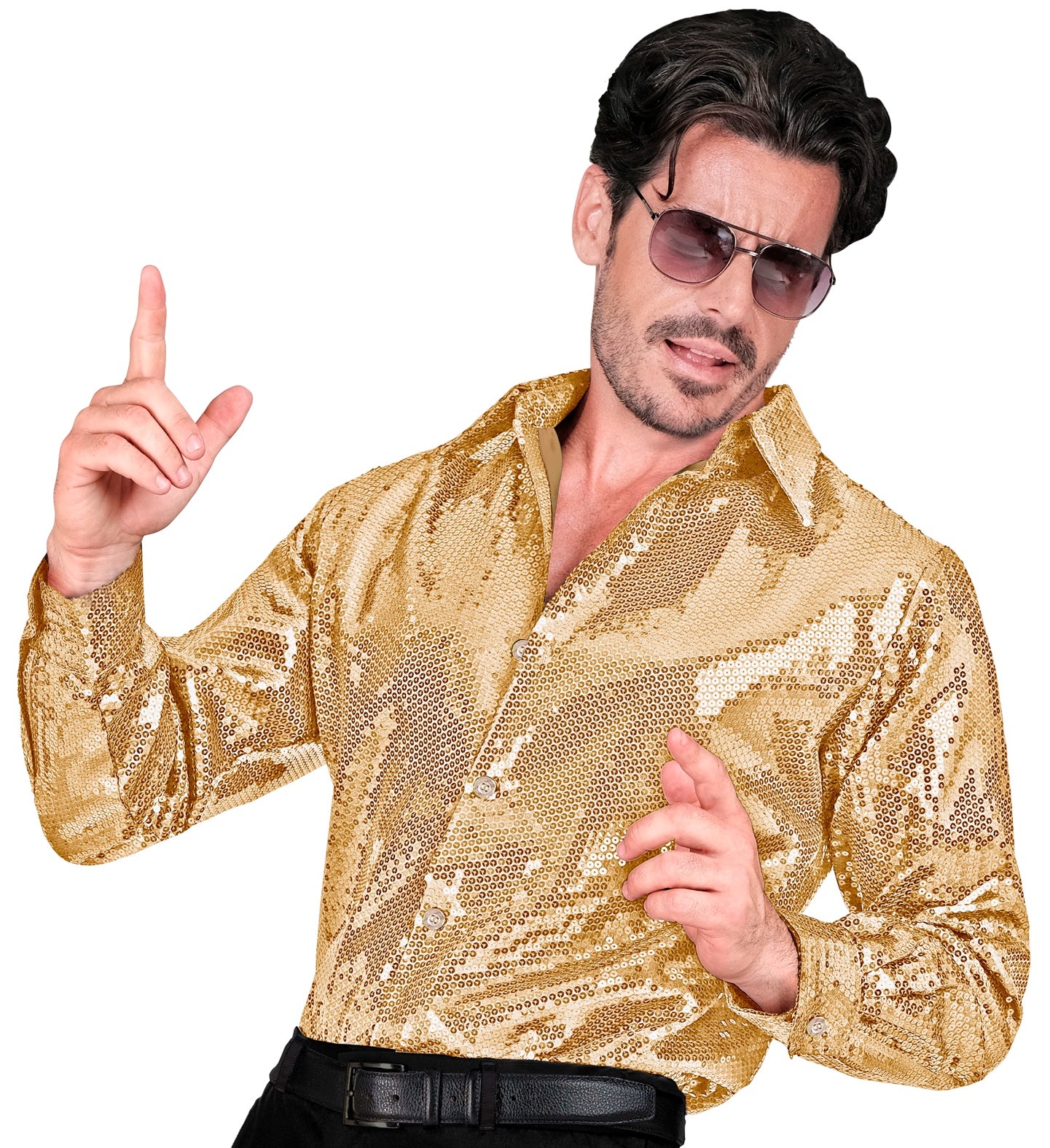 Beautiful sequin shirt men Ard gold for a naughty party. Read more