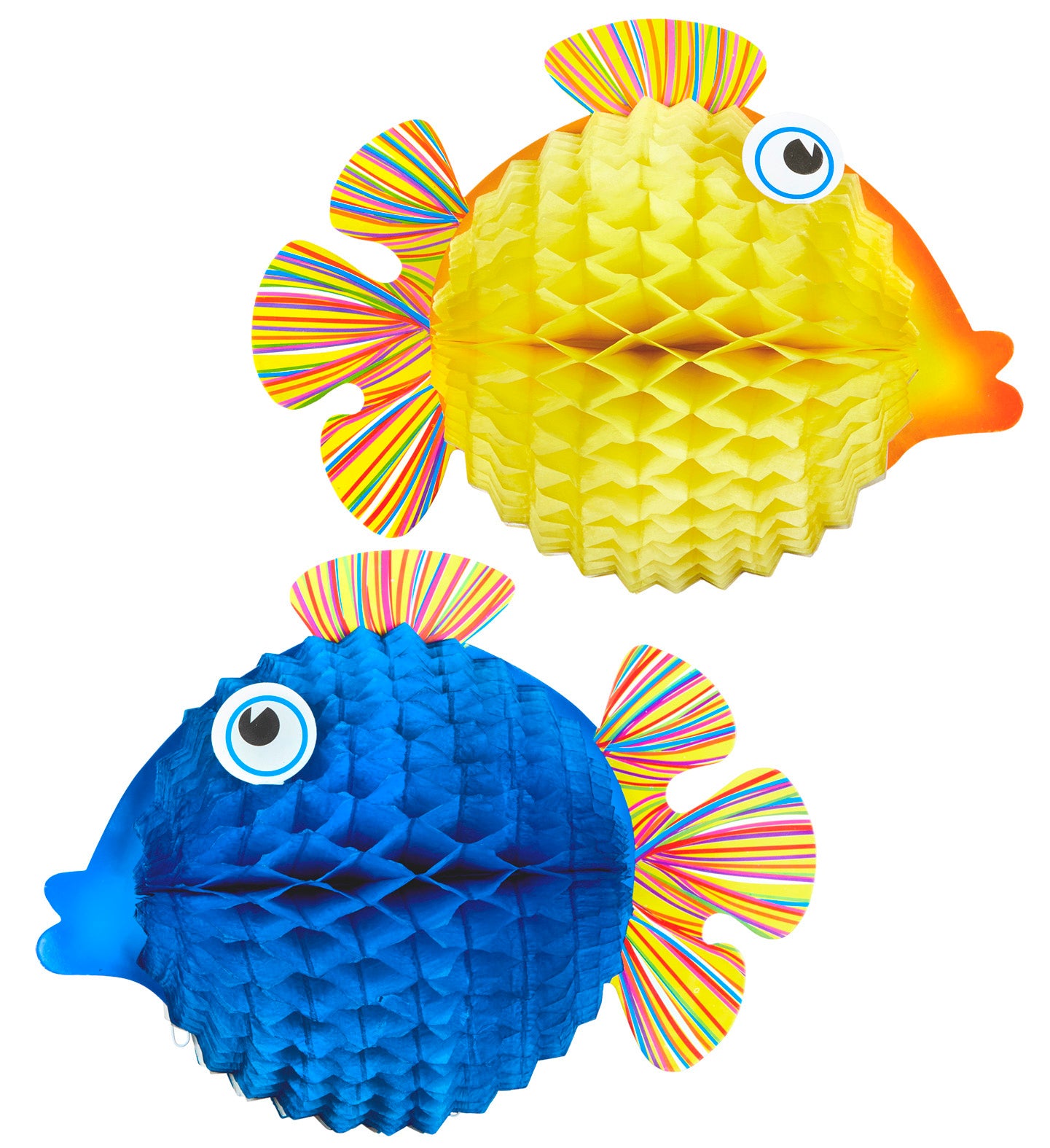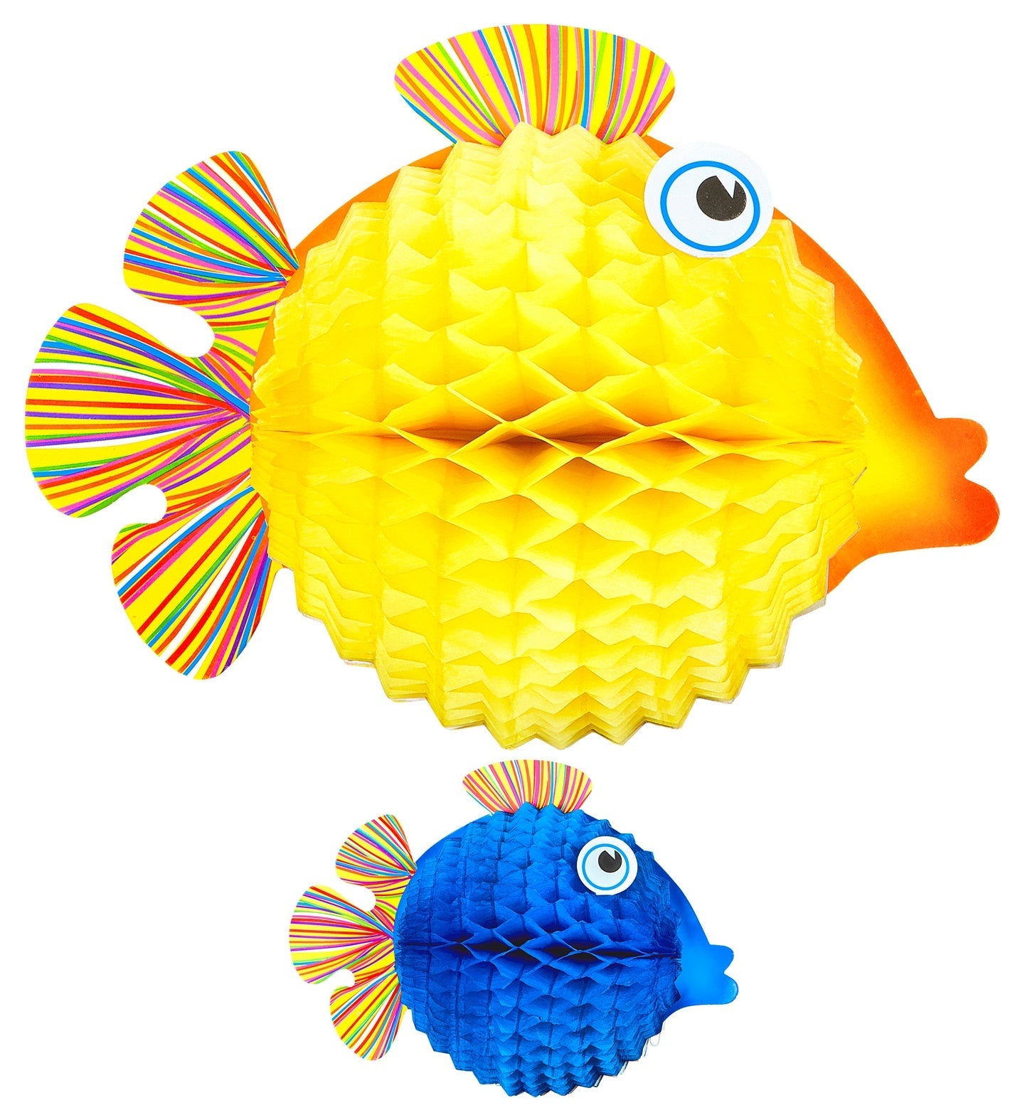 Beautiful set of 2 honeycomb lanterns decorations tropical fish made of paper.