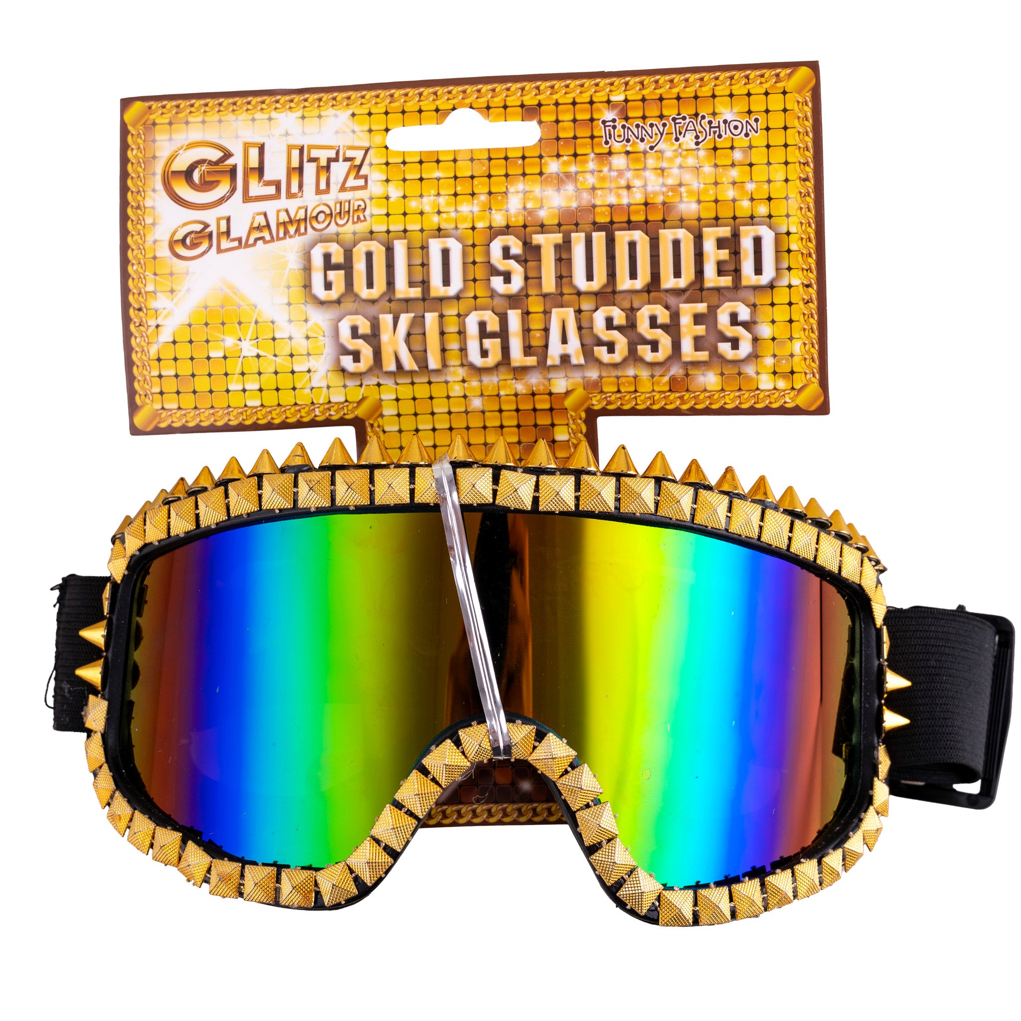 Ski goggles with gold rhinestones