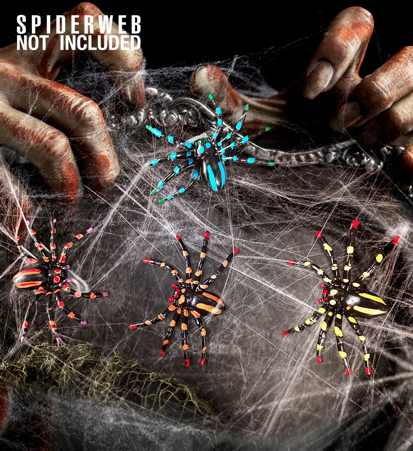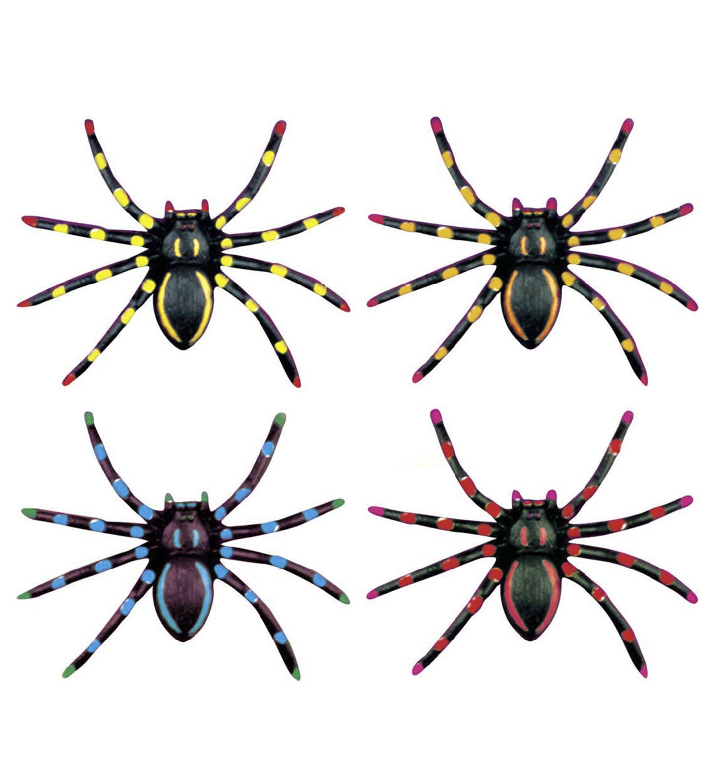 Neon fake spiders 4 pieces