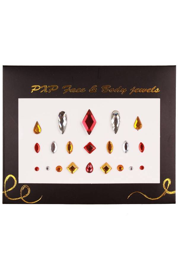 Nice stick-on stones in the colours red-gold-silver for face and body Read more