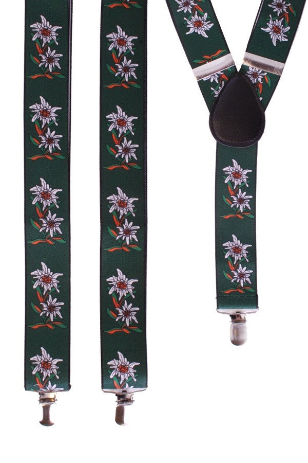 Green Oktoberfest suspender with Edelweiss