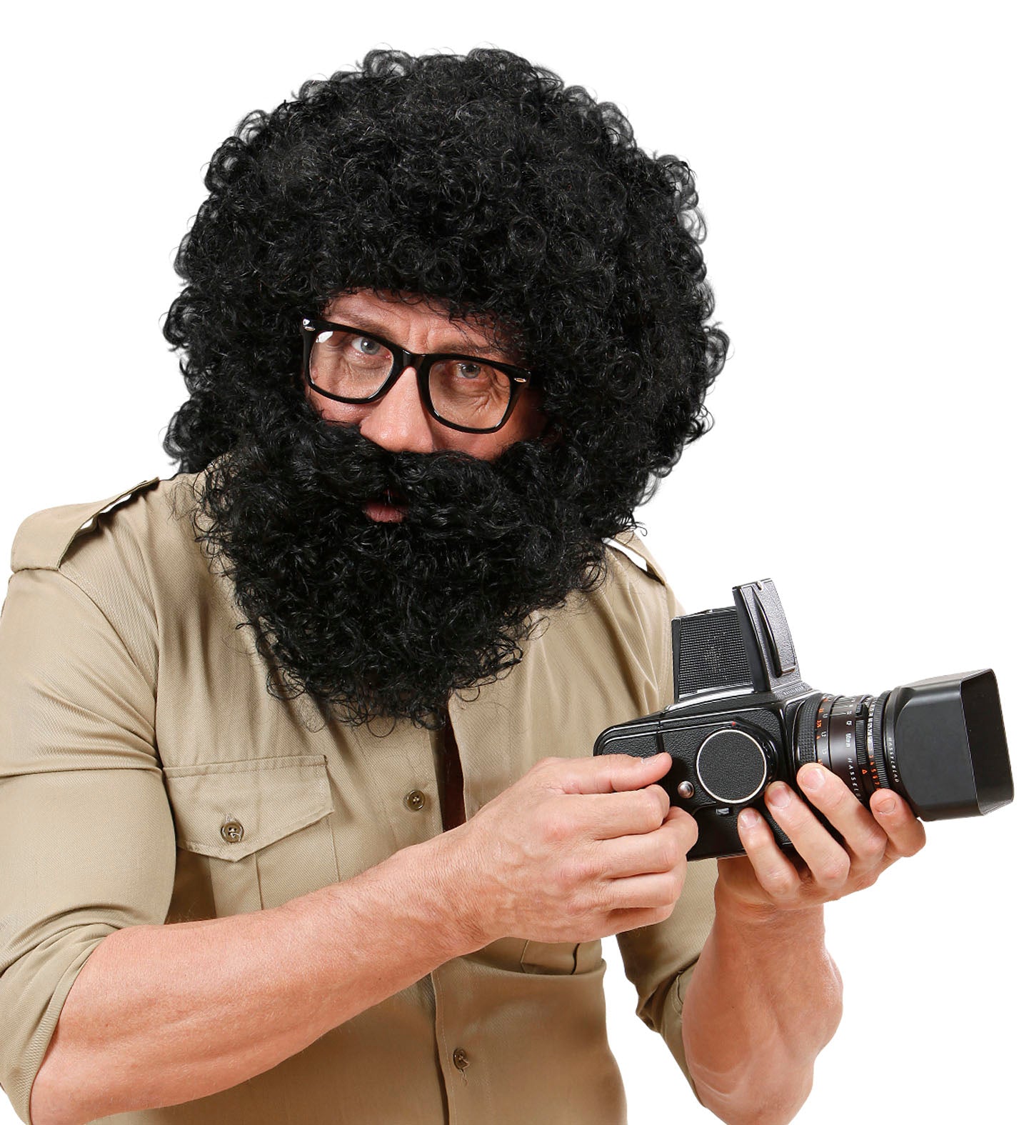 wig character with curls and beard black