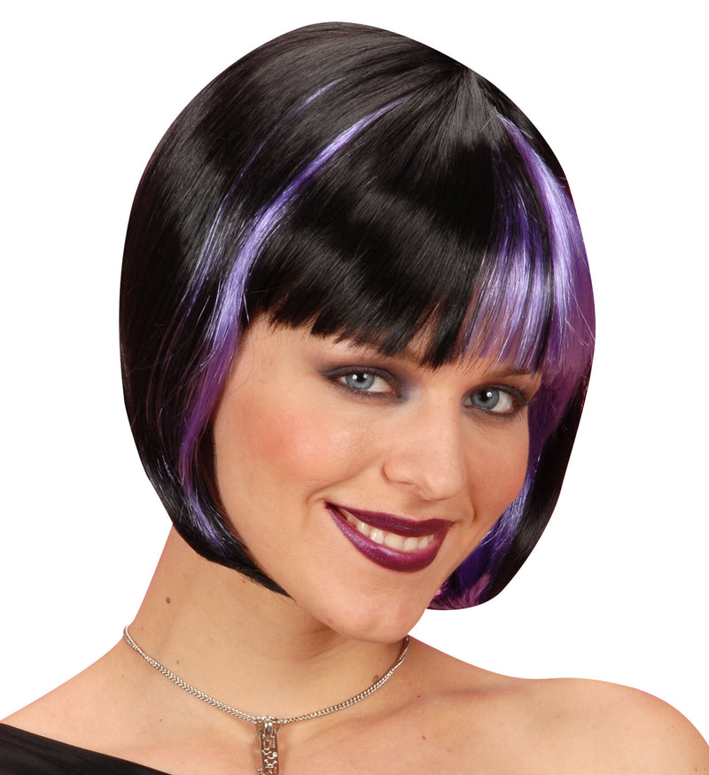 Bob wig black with purple highlights
