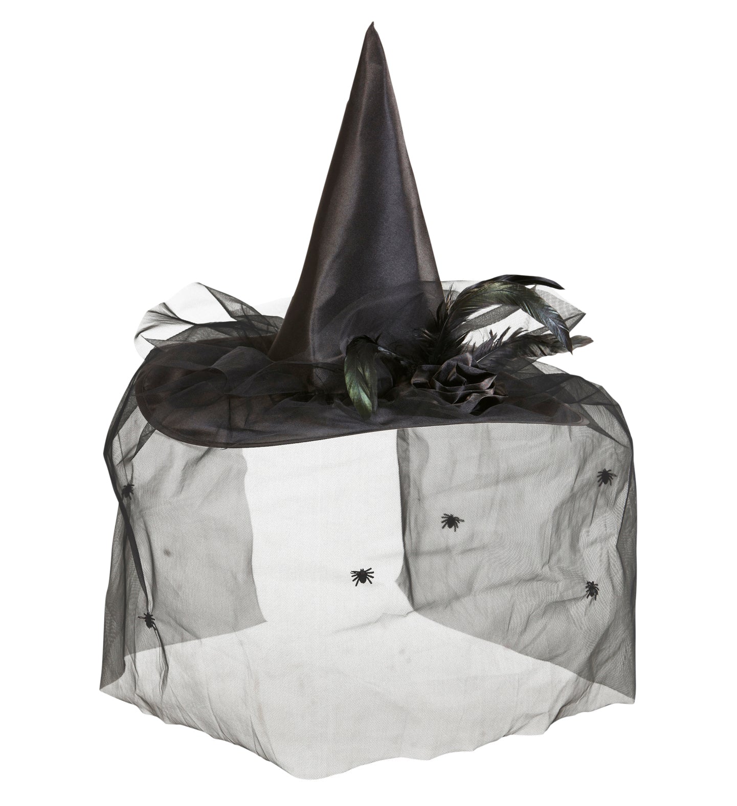 Witch Hat With Tulle Flower And Feathers