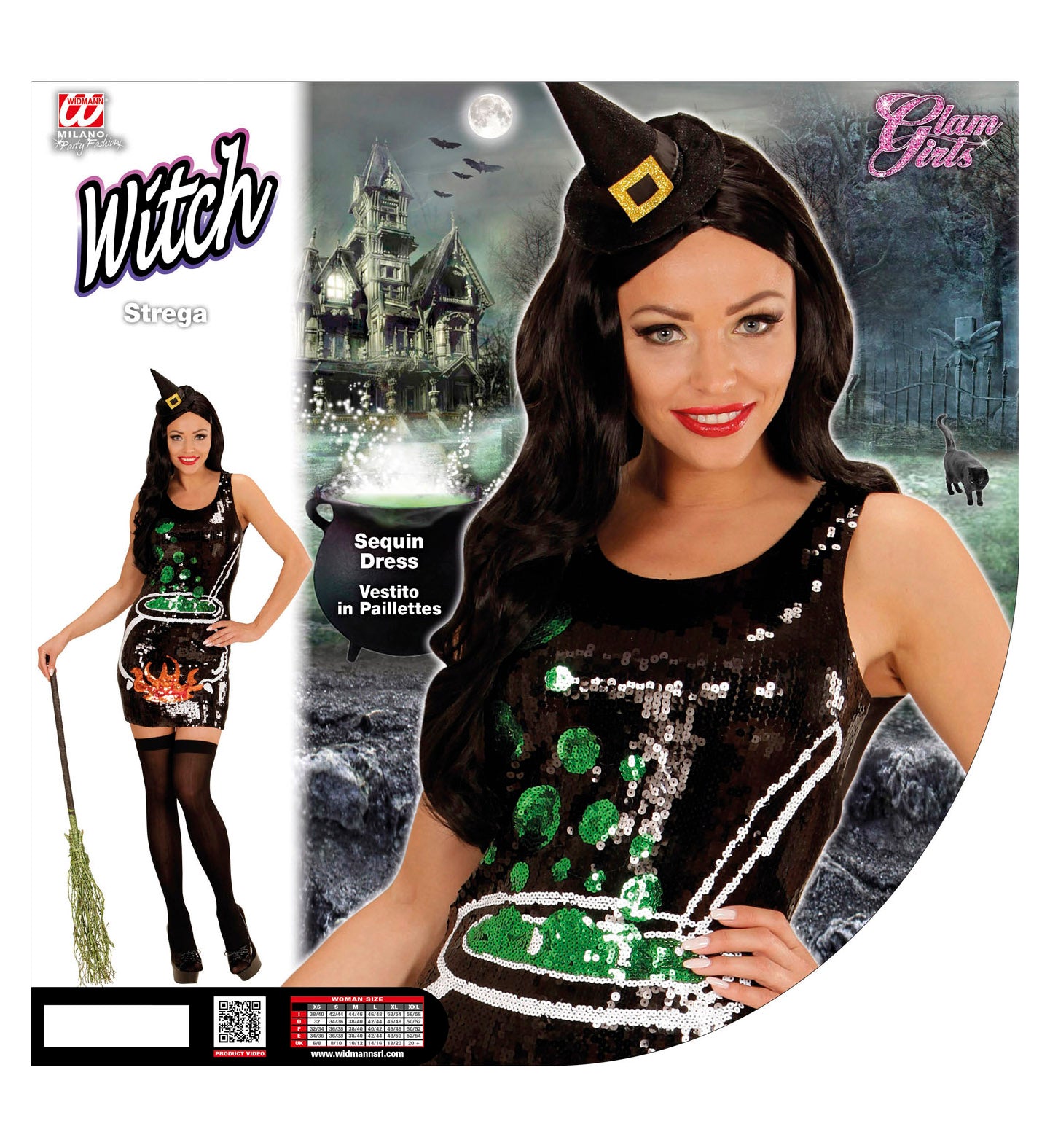 Witch costume with fire pot This witch costume with fire pot is a beautiful black sequin dress with print on... Read more